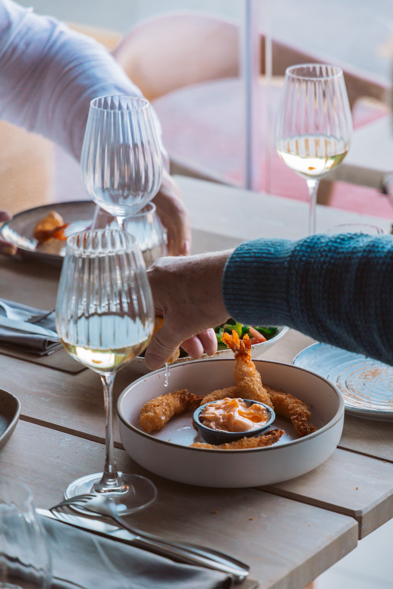 Enjoy a relaxed seaside dining experience with fresh seafood, seasonal plates, and refreshing drinks—perfect for golden hour and coastal vibes by the water.